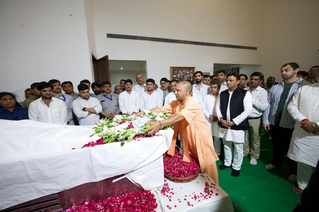 राजकीय सम्मान के साथ हुए अंतिम संस्कार में रक्षा मंत्री राजनाथ मौजूद थे। कई राज्यों के मुख्यमंत्री, उप-मुख्यमंत्री और पूर्व मुख्यमंत्री भी पहुंचे। बेहद करीबी माने जाने वाले अमिताभ बच्चन के बेटे अभिषेक बच्चन मां जया के साथ पहुंचे। सहारा चीफ सुब्रत राय और उद्योगपति अनिल अंबानी ने भी अंतिम दर्शन किए।